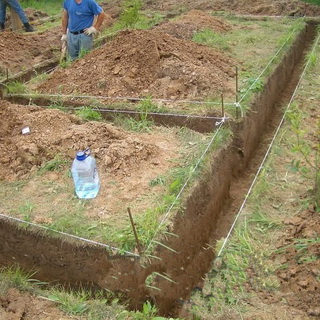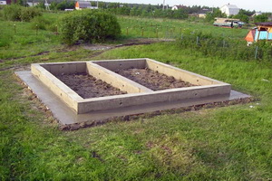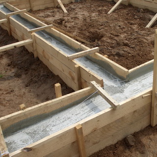 6. Установите по периметру траншеи и под внутренними несущими стенами опалубку необходимой высоты. Ее можно сделать как из досок, таки из специальных щиток. При этом их ширина должна равняться высоте фундамента. Внутренний размер опалубки должен соответствовать ширине фундамента. В том случае если щиты выполнены из дерева, внутреннюю поверхность опалубки стоит выложить пергаментом, который позволит в дальнейшем снять их без особых проблем.