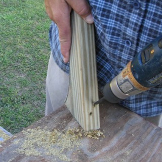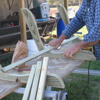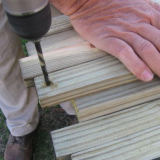 При помощи клея и шурупов-саморезов прикрепите к боковинам детали спинки, сиденья и крайние планки, оставив между ними равномерные зазоры. Для большей надежности при креплении деталей лучше использовать по два шурупа-самореза с каждой стороны.