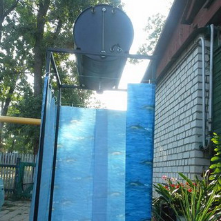 При выборе бака для воды обращайте внимание на материал. Металлический бак более прочный и крупный, но без автоматического подогрева воду в нем можно будет нагревать от солнца. Для этого можно будет покрасить его черной краской. Пластиковый бак более легкий и намного проще устанавливается на крыше. Если вы собираетесь снимать бак на зиму, то лучше всего использовать именно пластиковую емкость.