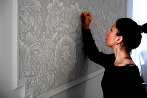 Наклеить линкруст несложно — сама процедура почти ничем не отличается от оклейки обычных обоев. Но так как он имеет более плотную структуру, перед началом работ материал следует смочить водой и использовать только специальный клей.
