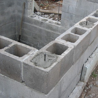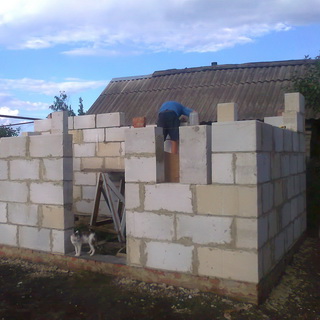 Чтобы возвести стены из блоков, работу нужно начать с угла будущего строения. Для связки отдельных элементов применяют цементно-песчаный раствор, в который добавлена известь. В первом ряду предусматривают специальные карманы, в которые впоследствии монтируются балки пола.
