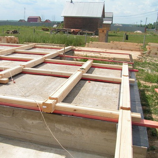 Теперь приступают к строительству стен. На гидроизоляционный слой, проходящий по всему периметру фундамента, раскладывают деревянные рейки толщиной до 15 мм и длиной по ширине фундамента; расстояние между ними — 2—2,5 см.