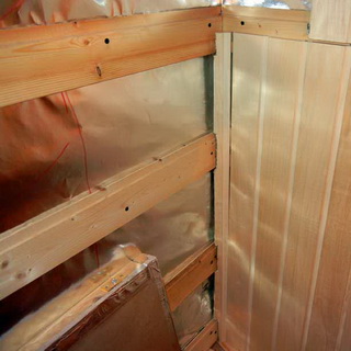 Пустое пространство между стеной и вагонкой утепляют плиточным материалом или обычной фольгой. Для теплоизоляции пригодны также пакля, пергамин и минеральная вата. Если вместо вагонки применялись горизонтальные доски, то утеплить стены можно и насыпным керамзитом.