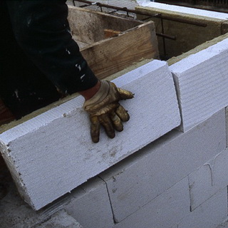 Укладывая второй ряд, необходимо делать перевязку: сместить блоки на половину их длины, чтобы предупредить появление трещин при усадке здания. Для большей прочности стен через каждые 2 ряда строительных блоков укладывают арматурную сетку.