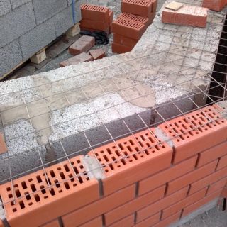 Перед тем как на опалубку укладывать рядовую перемычку, требуется нанести слой раствора толщиной 20—30 см, после чего уложить в него арматуру, состоящую из трех стержней диаметром 4—6 мм. Арматуру заводят за край проемов не менее чем на 25 см и загибают вокруг кирпича — это называется «заанкерить в кладке». Перемычку выдерживают на опалубке в течение 12 суток, если температура воздуха составляет от 10 °С, или 18—24 суток, если температура в пределах 1—10 °С.