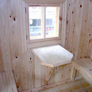 Отливы для бани из дерева применяют стандартные, поставляемые в комплекте с окном. А подоконник бывает не только пластиковым, но и деревянным.
