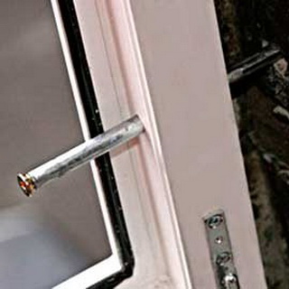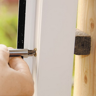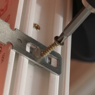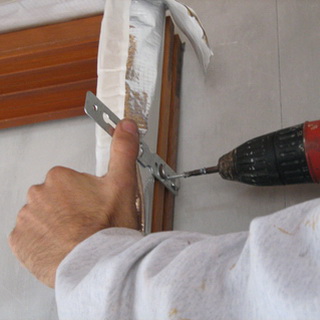 Затем делают отверстия под длинные саморезы или анкерные болты, располагая сверло по металлу с внешней стороны рамы. Вставляют в проем раму, подложив специальные уголки из пластика по периметру, которые позволят обеспечить зазор; выравнивают ее по вертикали и горизонтали, слегка перемещая уголки. Желательно располагать распорные приспособления недалеко от точки крепления при помощи анкера или самореза: это позволит предохранить раму от деформации.