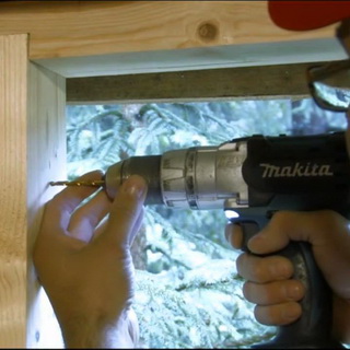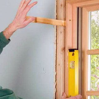 После контроля вертикалей и горизонталей при помощи отвеса и ватерпаса окончательно монтируют окно. Затягивать крепление туго не следует, иначе рама будет бочкообразно выгибаться. Как только шляпка встанет вровень с рамой, завинчивание можно заканчивать.