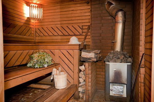 Сначала нужно осмотреть и очистить банную печь: заглянуть в топку и почистить ее от сажи. После этого необходимо осмотреть дымоход, и если его отверстие значительно сужено, почистить его от сажи.
