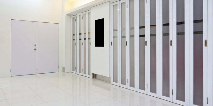 Раздвижные перегородки. Это самое простое устройство перегородок. Позволяют быстро преобразовать пространство и превратить, например, большой зал в несколько комнат. Такие перегородки не крепятся к полу и состоят из одного или нескольких модулей, соединенных между собой. Для установки раздвижных перегородок используется несущий профиль, прикрепленный к потолку помещения анкерными болтами. По направляющим этого профиля элементы перегородки сдвигаются в нужное положение.
