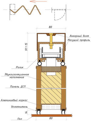 Конструкция несущего профиля и раздвижной перегородки на фото.