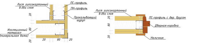 В местах сопряжения с несущими стенами устанавливают анкерный болт, связывающий перегородку с несущей стеной, а над дверными проемами металлические перемычки.