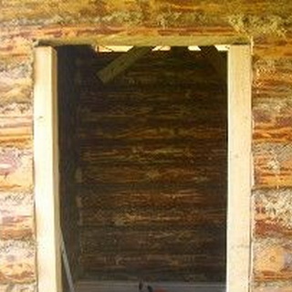 Чтобы врезать дверь в сруб, проем делают шире дверной коробки на 1—2 см, проверяют перпендикулярность его земле при помощи отвеса и строительного уровня.