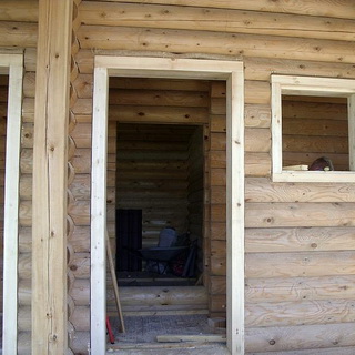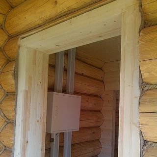 Все образовавшиеся зазоры заполняют паклей и с обеих сторон закрывают наличниками. Через 3 года паклю в осевшем проеме можно заменить на монтажную пену. Если сруб новый, пена не подойдет, поскольку при усадке потрескается и утратит герметичность.