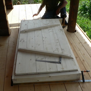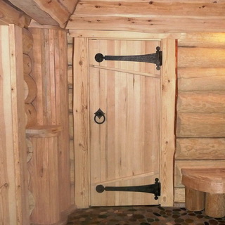 Заключительный этап того, как установить дверь в баню из сруба, — повесить дверное полотно, законопатить все щели и установить замок. Обычно деревянную дверь ставят строения из дерева. Если же баня из кирпича или бетона, то, как правило, монтируют металлическую дверь.