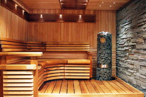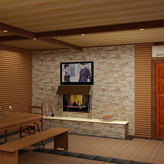 В комнате отдыха и предбаннике можно сделать пол, облицованный плиткой, деревянный или даже настелить линолеум.
