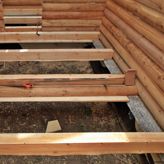 Если пол непротекающий, лаги монтируют от стен к приямку. Завершающие конструкцию лаги располагают выше, чем по следующие брусья, врубки в них не делают. Остальные лаги оснащают врубками с некоторым укосом в 0,2—0,3 см.