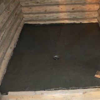 Перед тем как сделать пол в бане со сливом, непременно предусматривают уклон в сторону сливного отверстия. Если же пол непротекающий, уклон не обязателен. Кромки изолируют рубероидом. Заливают густой раствор бетона в пропорции: на 1 часть цемента 5 частей щебня и 3 части песка.