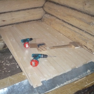 Желательно в моечной и парной не закреплять доски с помощью гвоздей, что позволит поднимать их для быстрой просушки. В качестве крепежа используют бруски сечением 2 — 3 см. Их прикручивают к лагам шурупами — «глухарями». Пол в дальнейшем легко снимается. Между завершающим покрытием и черновым полом оставляют пространство для вентиляции.