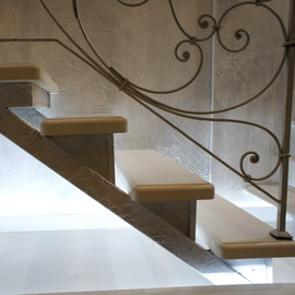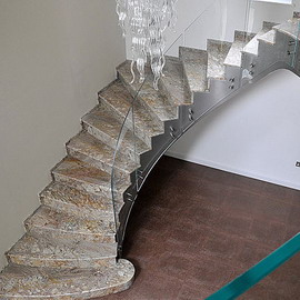 Натуральный и искусственный камень в частных домах используется только для облицовки ступеней лестницы. Несущая конструкция в таком случае выполнена из бетонных блоков. Каменные лестницы наделены такими преимуществами, как прочность, долговечность и пожароустойчивость.