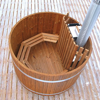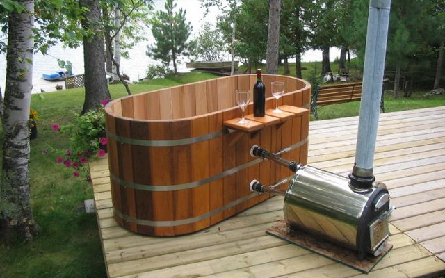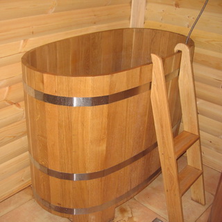 Современные купели из дерева могут оснащаться скамьей, лестницей, специальным фильтром для воды, гидромассажером, а также системой подогрева. Все это приобретать не обязательно, подобные дополнительные аксессуары продаются отдельно. Но, конечно, подобные приспособления делают принятие банных процедур еще более комфортным.