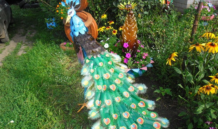 Садовые фигурки можно изготовить практически из любых материалов, например, из обычных пластиковых бутылок. Не спешите избавляться от пластиковых бутылок, ведь с помощью них получатся необычные и красивые фигурки для вашего дачного участка.