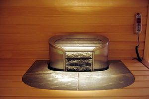 Сначала необходимо повысить инертность парной. Для этого нужно либо увеличить количество камней в печи или, если в нее не помещается такая масса, предусмотреть для них дополнительное корыто, изготовленное из оцинкованной сетки. Устанавливается оно непосредственно на каменку.