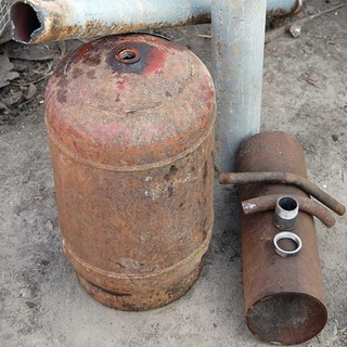 Сначала нужно взять пустой газовый баллон из-под пропана, выпустить из него остатки газа и осторожно удалить клапан из латуни. После этого нужно хорошенько вымыть его внутреннюю часть, взяв моющее средство для посуды. Процедуру нужно выполнять, пока запах газа не исчезнет полностью. Теперь баллон требуется хорошенько высушить и врезать в его нижнюю часть ТЭНы. На каждые 10 л воды должно приходиться по 3 кВт мощности.