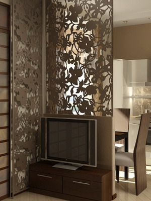 Существуют также декоративные перегородки. Они выполняются в виде отдельных элементов и служат для функционального разделения помещений. Подобная перегородка может отделять зону сна от другой зоны и одновременно служить элементом мебели, позволяя экономить пространство. Часто они служат декоративным предметом интерьера и могут изготавливаться, например, в виде стеллажа или со сквозными нишами.