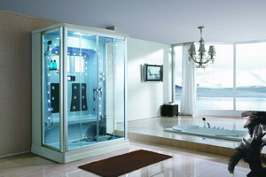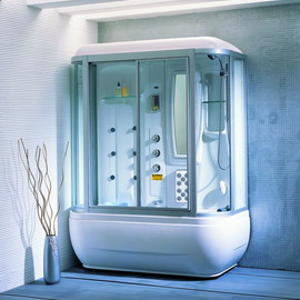 Есть еще комбинированные души, они для тех, кто ищет нечто среднее и более универсальное для СПА процедур. К комбинированным душам относится душевая кабинка с генератором пара, который обеспечивает внутри мини-парилку. Также к комбинированным душам относятся душевые, соединенные с инфракрасными саунами. Душевая кабинка изготавливается в таком случае из 2-х примыкающих частей — кабинки для душа и сауны с инфракрасными обогревателями.