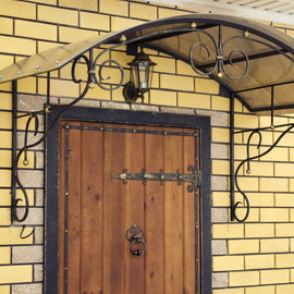 Более долговечными являются металлические козырьки. Чаще всего они изготавливаются из металлопроката, однако также популярными являются козырьки, изготовленные с использованием художественной ковки.