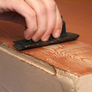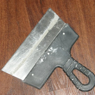 Металлический шпатель. Рабочая часть инструмента — лезвие шириной 30-100 мм — изготавливается из упругой стали и должна быть ровной и тщательно отшлифованной. На хвостовую часть надевается деревянная ручка. Металлические шпатели используются для чистовых работ — шпатлевания по древесине, удаления старой краски, замазки и т. д.