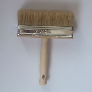 Побелочная кисть. Для побелочных работ используются побелочные кисти шириной 200 мм и толщиной 45-65 мм с волосом длиной около 100 мм. Если сравнивать побелочную кисть с маховой, продуктивность первой будет примерно в 2 раза выше.