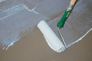 Как нужно наносить грунтовку при помощи валика? Его надевают на длинную телескопическую ручку, окунают в состав и равномерно распределяют грунт по поверхности. Поверхность необходимо тщательно смочить, но образования лужиц на полу следует избегать. Участок должен быть полностью обработан. Отдельно с помощью кисти грунт наносится по углам и в труднодоступных местах — под подоконниками, на стыках стен и за батареями.