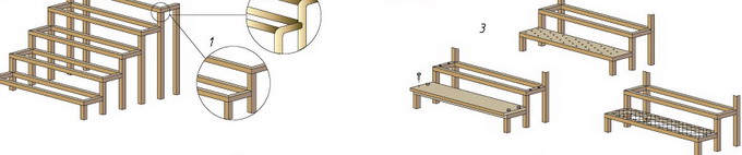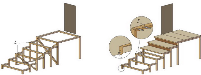К гребням, в свою очередь, прикручивают деревянные ступени или подступенники либо приваривают металлические рамы, изготовленные из уголка 45х45 мм.