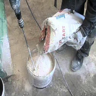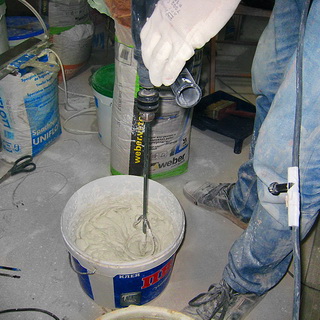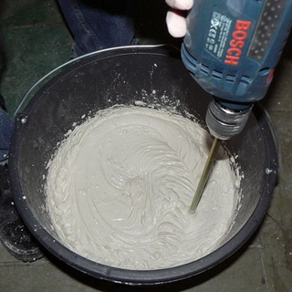Если используется сухая шпатлевочная смесь, ее необходимо правильно приготовить. Следуя инструкции, нужно налить в емкость определенный объем воды и высыпать в него сухую смесь, непрерывно перемешивая шпателем. Чтобы получилась однородная масса, можно использовать дрель с насадкой-миксером. Готовность шпатлевки определяется по ее консистенции — смесь должна быть эластичной, легко прилипать к шпателю и не стекать с него. Если необходимо ее загустить, понемногу добавляется сухая шпатлёвка. Появление в смеси комков означает, что она слишком сухая.