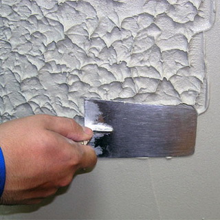 Толщина слоев шпатлевки может варьироваться от 2 до 4 мм и зависит от степени нажима на шпатель — чем он сильнее, тем тоньше будет получаться слой. Слои не должны иметь стыков. Чтобы на слое материала не образовались полоски от песчинок, необходимо своевременно убирать их с лезвия шпателя. Важно правильно выбирать положение при работе на уровне груди или внизу стены.