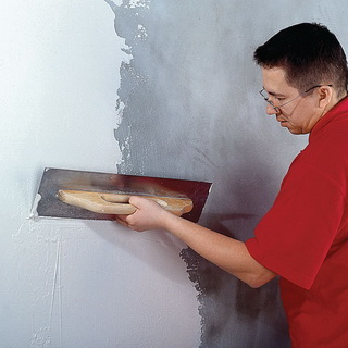 Чтобы слой подмазочной пасты не выделялся на поверхности стены, опытные маляры используют следующий прием. Придерживая двумя пальцами снизу ручку шпателя, одновременно с этим указательным и средним пальцами плотно прижимают шпатель к поверхности стены и с легким нажимом передвигают его «елочкой». Угол между плоскостью шпателя и стеной должен составлять 30°. Таким образом подмазочная паста плотно наносится на поверхность стены.