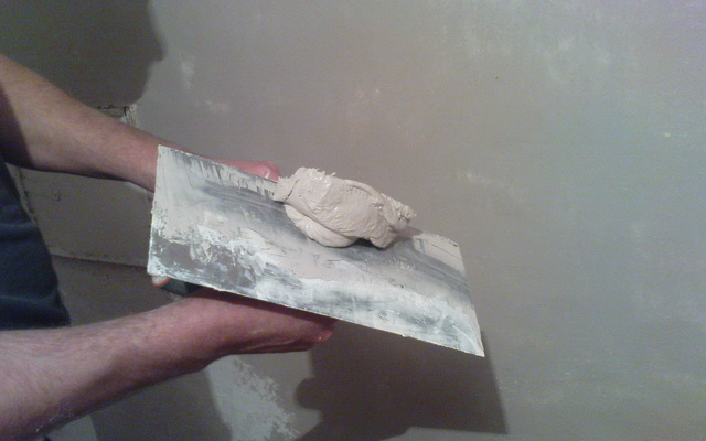 Стартовое шпаклевание стен своими руками выполняется с помощью грубого материала. Цель такого чернового шпатлевания состоит в устранении больших перепадов стен, сокрытия штроб, отверстий и видимых дефектов. Толщина стартовой шпатлевки, наносимой в один слой, может достигать 1,5 см. На поверхность шпатлевка наносится с помощью шпателя. Ее необходимо тщательно растирать, и чем шире шпатель, тем быстрее пойдет работа.