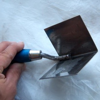 Угловые шпатели удобны для обработки углов помещения. Сначала маленьким шпателем наносится небольшой слой шпатлевки по всей высоте угла, а угловым шпателем поверхность выравнивается. Слой шпатлевки должен хорошо высохнуть в течение суток.