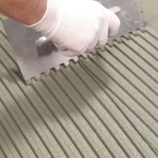 Как видно на фото, при укладке ковровых покрытий на пол на обеспыленное основание мастику или клей наносят тонким слоем 0,2-0,3 мм шпателем с мелкими зубьями: