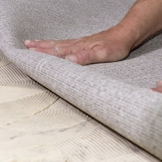 Перед тем как клеить ковер, нужно скомпоновать полотнища таким образом, чтобы смежные имели одинаковое направление ворса. Приклеивать каждое полотнище начинают от одной из стен. Марку клея или мастики выбирают в зависимости от вида ковра.