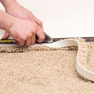 Основание под настил из коврового покрытия очищают, проверяют его ровность и горизонтальность двухметровой рейкой и уровнем. Затем рулоны раскатывают и прирезают по всей длине помещения. Если ковер имеет волнистость, ему дают вылежаться до полного разравнивания.