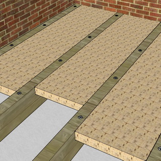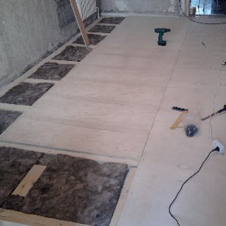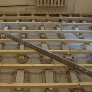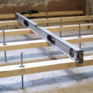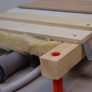 К пластиковым лагам деревянное покрытие крепят саморезами. Если в помещениях, где используются регулируемые лаги, проектом предусмотрено покрытие из штучных материалов (например, ламината), то по лагам в 2 слоя настилают листы толстой фанеры, на которую укладывают покрытие.