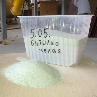 Дробленое стекло получается из отходов и боя непрозрачного и обычного стекла. Оно применяется в качестве декоративного заполнителя в мозаичных растворах, что позволяет создать при выполнении работы неповторимый рисунок. К тому же за счет этого стоимость раствора значительно уменьшается.