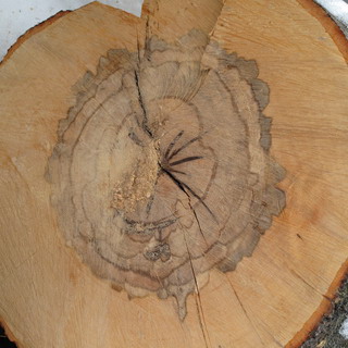 Ложное ядро — неравномерно окрашенное, темное пятно, границы которого обычно не совладают с годичными слоями.