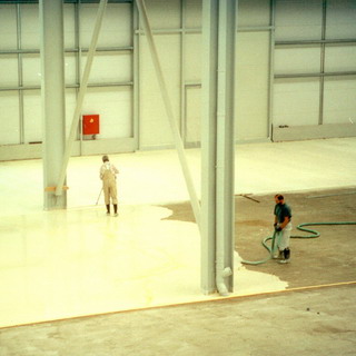 Масляные пятна на бетонном основании удаляются раствором едкого натра, а известковые — 3% -ным водным раствором соляной кислоты. Остатки соляной кислоты и щелочи смываются водой, после чего основание подсушивается. Бетонное основание насекается и огрунтовывается за 40 мин до укладки ксилолитовой смеси.