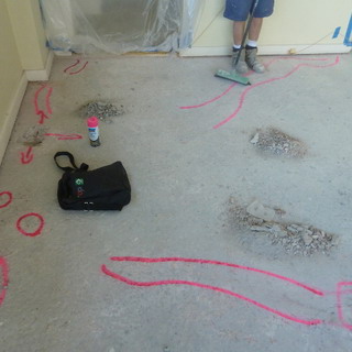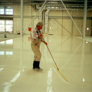 Ксилолитовая смесь укладывается в покрытие полосами (участками) шириной не более 2,5 м. При укладке нового участка покрытия кромка предыдущего обрезается вертикально по прямой линии. После этого поверхность очищается и огрунтовывается раствором хлористого магния. Вместе с этим огрунтовывается бетонное основание. Стык нового ксилолитового покрытия с прежде уложенным выравнивается до полного его исчезновения.