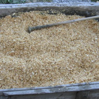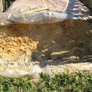 Опилки — короткие древесные волокна из сосны или ели, без пороков. Их влажность не должна превышать 20%. Для однослойного или верхнего слоя двухслойного ксилолитового покрытия крупность опилок должна быть не более 2,5 мм; для нижнего слоя — не более 5 мм.