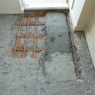 При появлении в покрытии трещин вдоль них вырубаются полоса трапецеидального сечения широкой стороной книзу, и вместо этой полосы укладывается новое ксилолитовое покрытие, которое при этом тщательно трамбуется и затирается.